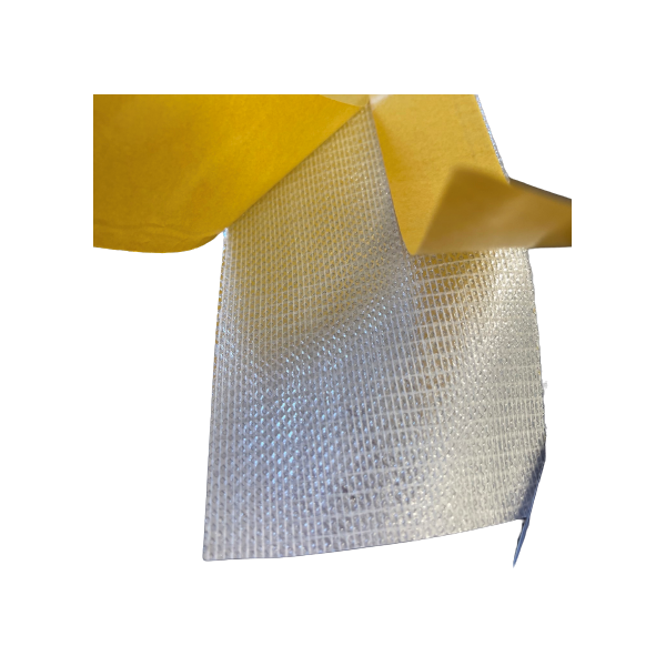 Taśma posiada klej akrylowy wzmocniony siatką na całej szerokości taśmy. Pełen klej + zbrojenie, na całej szerokości taśmy zapewnia odpowiednią przyczepność i szczelność.